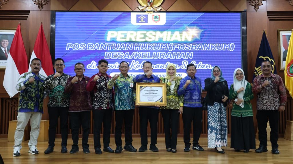 Penghargaan tersebut diserahkan pada agenda peresmian 2.015 Posbankum se-Kalimantan Selatan yang berlangsung di Banjarbaru, Jumat (30/1/2026). Penyerahan dilakukan langsung oleh Menteri Hukum RI kepada Bupati Tanah Bumbu melalui Asisten Perekonomian dan Pembangunan, Eryanto Rais.